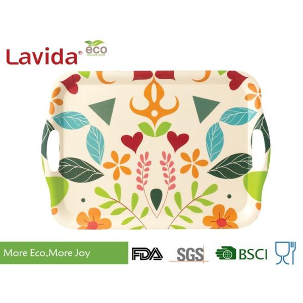 BSCI Audi Factory Bamboo Fiber Tray with side handles Bread Coffee Serving Tray Fruit Tray with food grade prints Images |